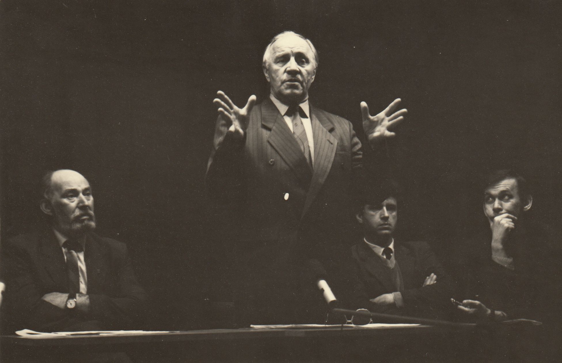 Александр Калягин: «Мы не могли не отметить Михаила Александровича Ульянова. Возникла идея выставки, на которой был бы представлен Михаил Александрович как выдающийся общественный деятель. Его великие театральные работы, его кино работы, наверное, будут представлены в театре. А мы хотели выразить свою любовь и благодарность этому человеку за то, что он сумел сохранить наше театральное объединение, как он любил говорить «наше театральное братство». В 1996 году на съезде СТД РФ, мою кандидатуру предложил Михаил Александрович Ульянов. Я уже признавался, что никогда не имел склонности к общественной деятельности, да и вообще на театральном съезде оказался впервые. Но так случилось, что благословил меня на эту должность Михаил Александрович Ульянов, и для меня это было очень важно. И первое, что я сделал, когда вступил на должность Председателя, уговорил Михаила Александровича позировать художнику, и у меня в кабинете висит его портрет, как и другие портреты всех великих предшественников, благодаря которым возникло эта уникальная организация еще в позапрошлом веке».