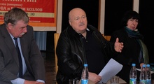 Из Хабаровска А.А. Калягин прилетел в Иркутск, где 10 сентября спектаклем «Шейлок» У. Шекспира здесь откроются гастроли театра Et Cetera. 9 сентября в Доме Актера Калягин встретился с театральной общественностью Иркутска. Он рассказал о том, как прошел театральный форум в Хабаровске, об итоговом документе, который должен быть подготовлен по результатам работы форума. Руководитель Иркутского отделения СТД РФ Владимир Орехов рассказал о тех проблемах, которые волнуют иркутчан, в частности, о необходимости реконструкции Дома Актера. Встреча проходила в форме диалога, А.А. Калягин слушал коллег, записывал вопросы, которые надо взять под свой контроль. Прозвучали на встрече и слова благодарности в адрес СТД РФ и А.А. Калягина – кто-то поделился своими впечатлениями о Доме ветеранов им. М.Г. Савиной, который стал настоящим дворцом, кто-то благодарил за помощь, оказанную после операции, кто- то за проект «творческая командировка» и возможность приехать в Москву и т.д. А сам Калягин поблагодарил всех за замечательную работу и вручил благодарственные письма СТД РФ.