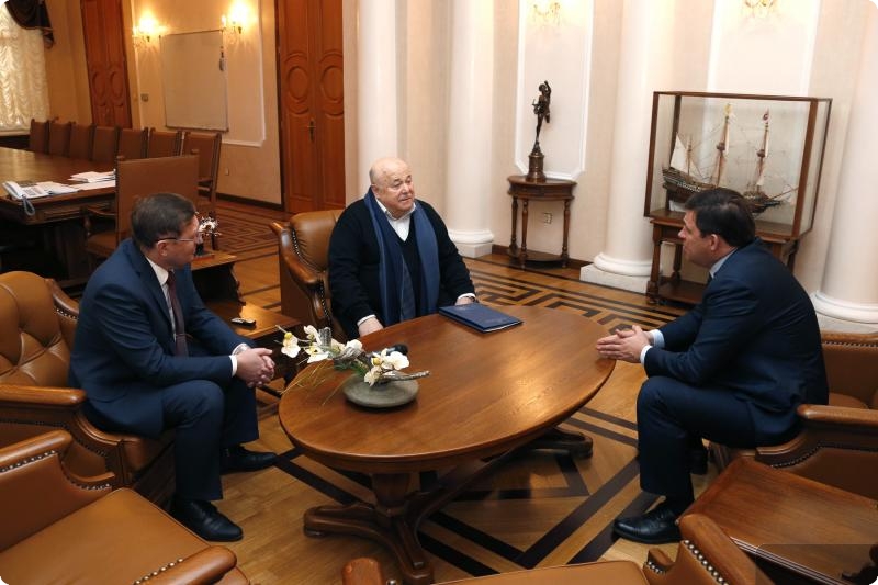 "Евгений Куйвашев 14 декабря встретился с председателем Союза театральных деятелей России, членом Общественной палаты России, народным артистом Александром Калягиным. Известный актер прибыл на Урал для участия в отчетно-перевыборном собрании Союза театральных деятелей. По мнению народного артиста, в Свердловской области уделяется пристальное внимание вопросам культуры.