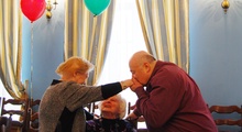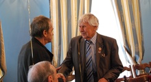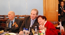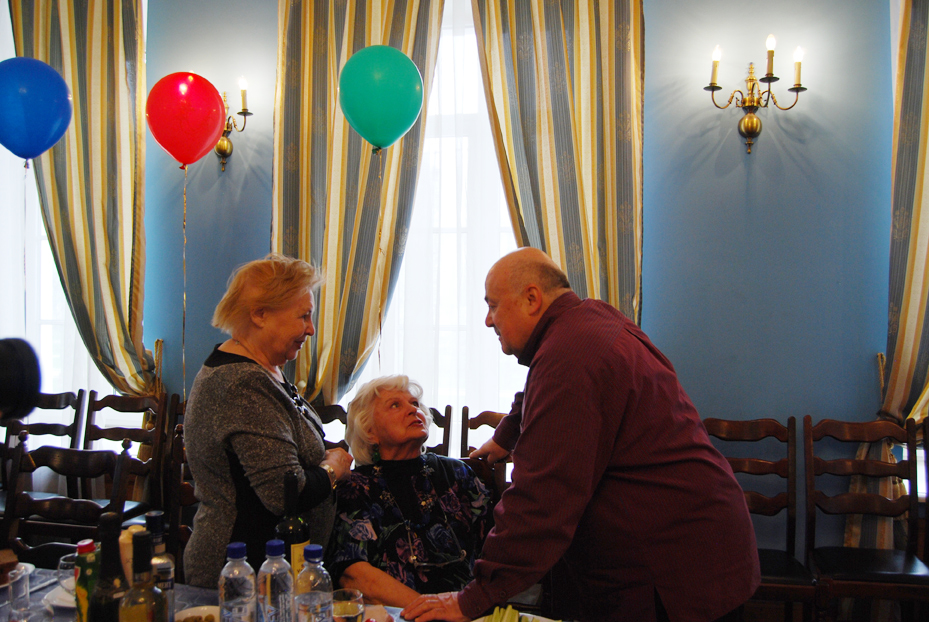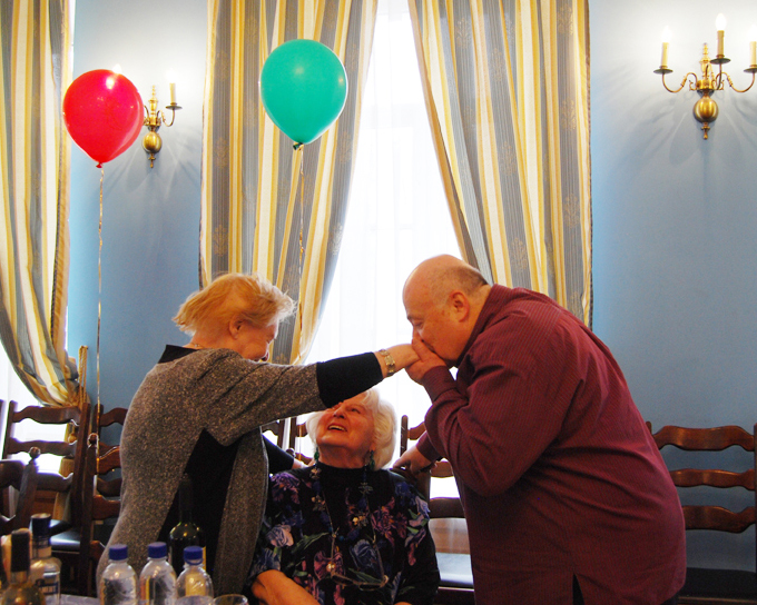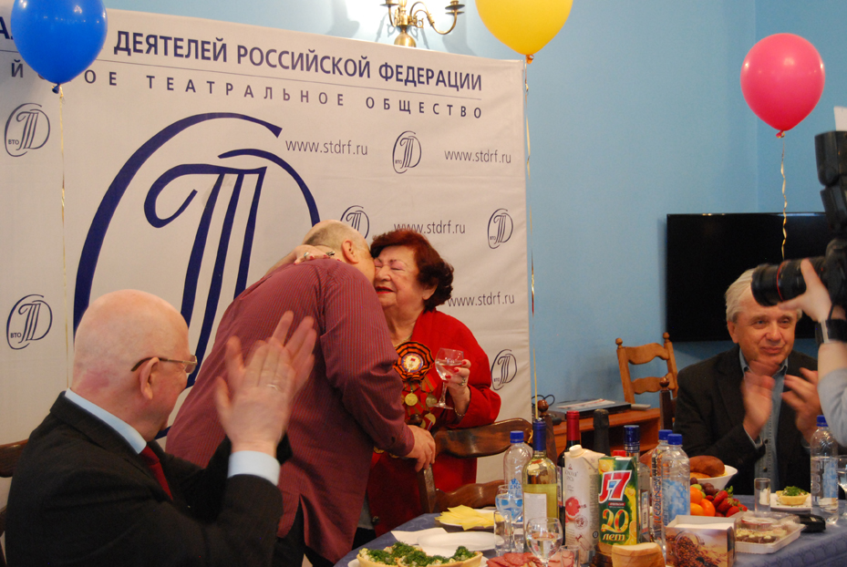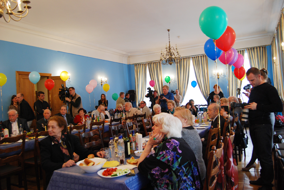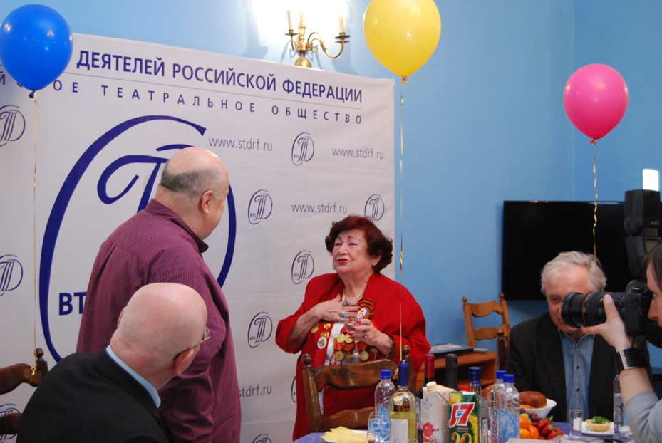 Сегодня Председатель СТД РФ Александр Калягин встретился с ветеранами войны, отечественной сцены, с теми, кто многие десятилетия служит нашему театру. В Синий зал Союза театральных деятелей России пришли Нина Гуляева, Николай Дупак, Николай Максимов, Александр Петров, Валентина Шарыкина, Галина Пидько, Зоя Зелинская. Александр Калягин поздравил коллег с наступающим праздником Великой Победы, пожелал ветеранам сил и долгих лет жизни. Александр Александрович заверил собравшихся, что Союз театральных деятелей России всегда будет рядом, всегда поможет. Помимо застолья ветеранов ждали подарки от СТД РФ и его партнеров - национального фонда поддержки правообладателей и банка «Зенит».